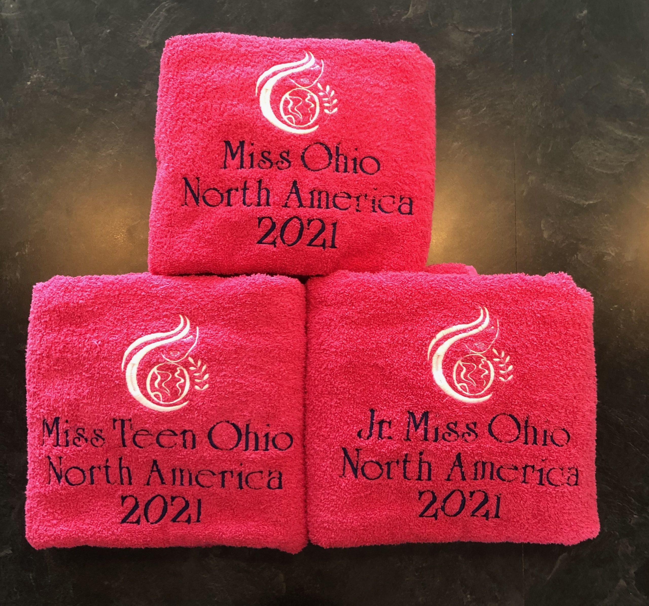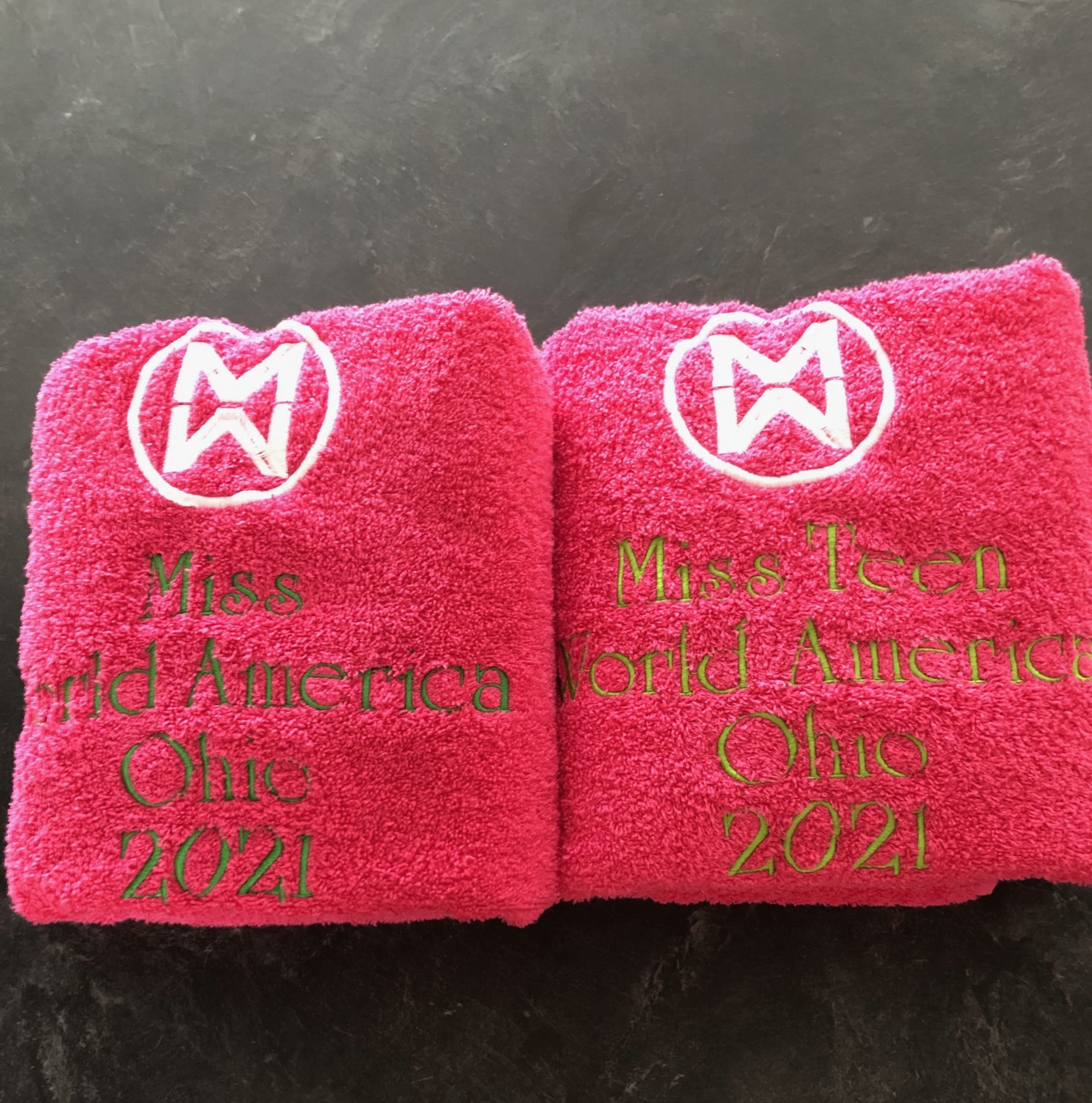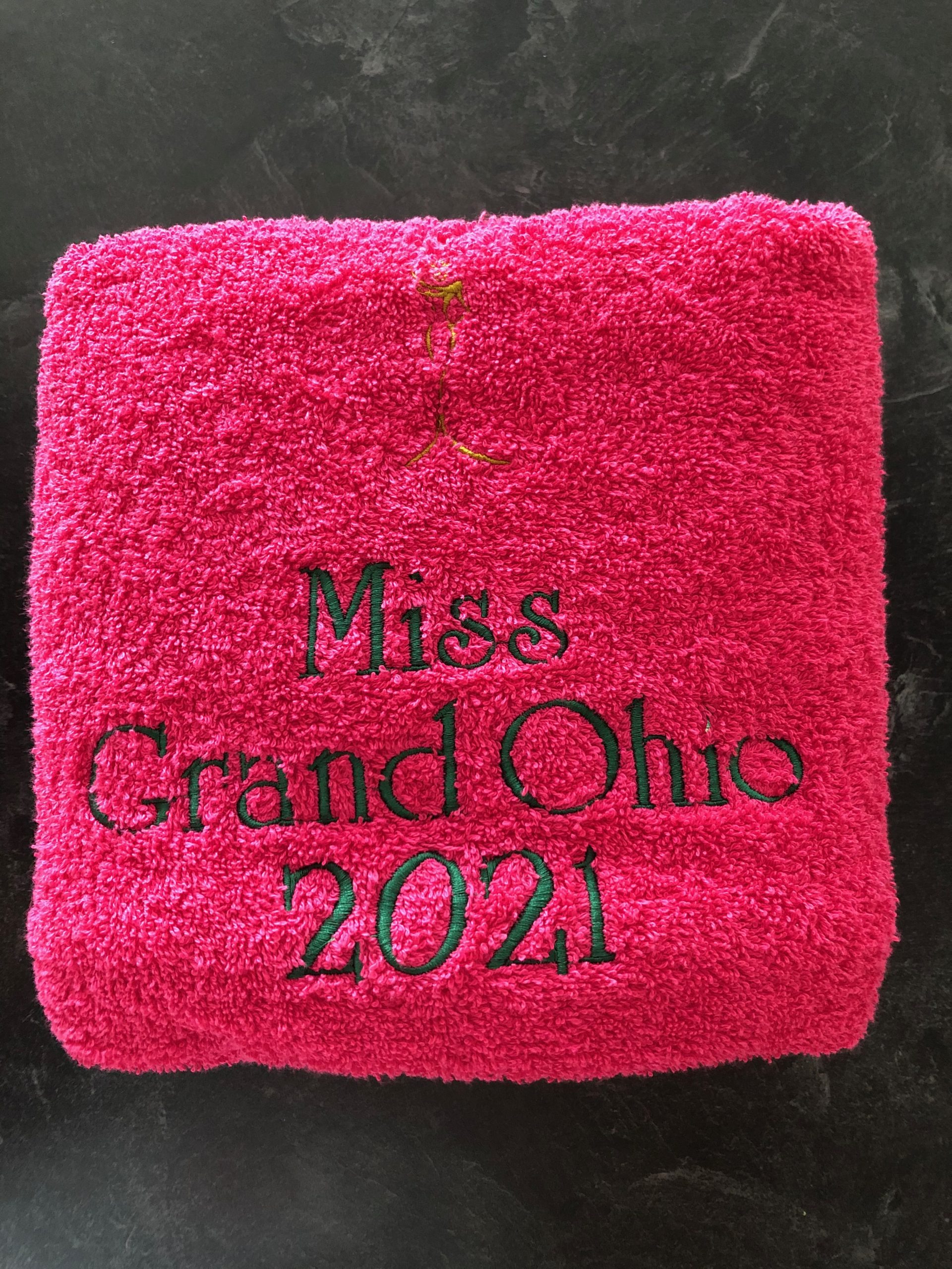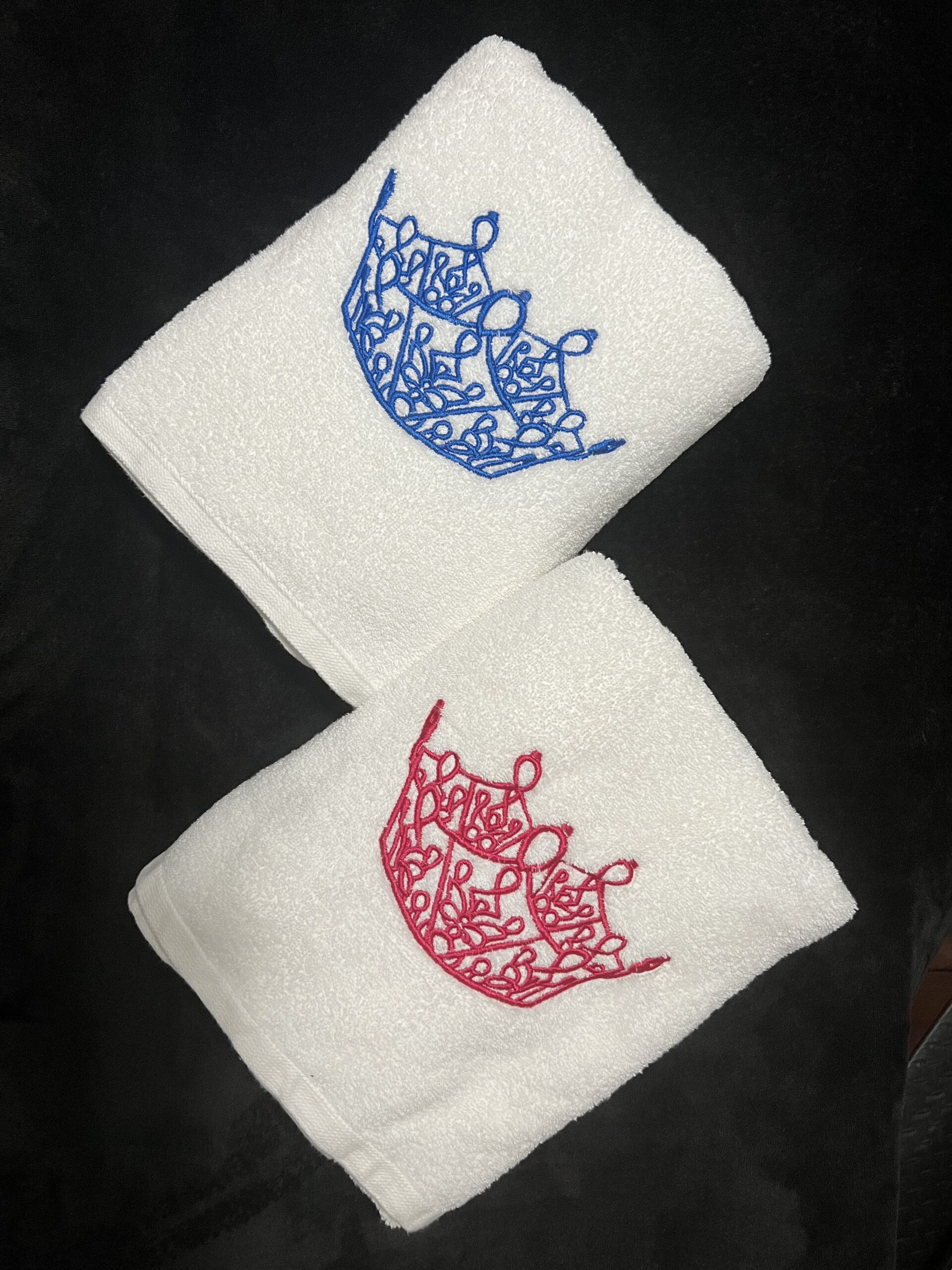 Add your crown or logo, year and title to these plush towels and show off your reign!
